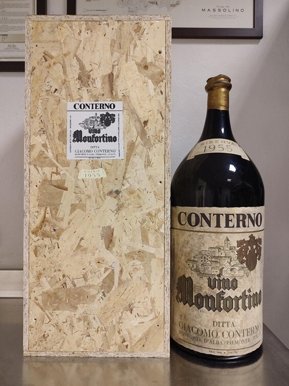 A 1955 Barolo ‘Monfortino’ Giacomo Conterno (13ltrs) in a Quarto di Brenta, which used to be a hollow measure, around Turin & Piedmont, of about 55 litres back in the day.